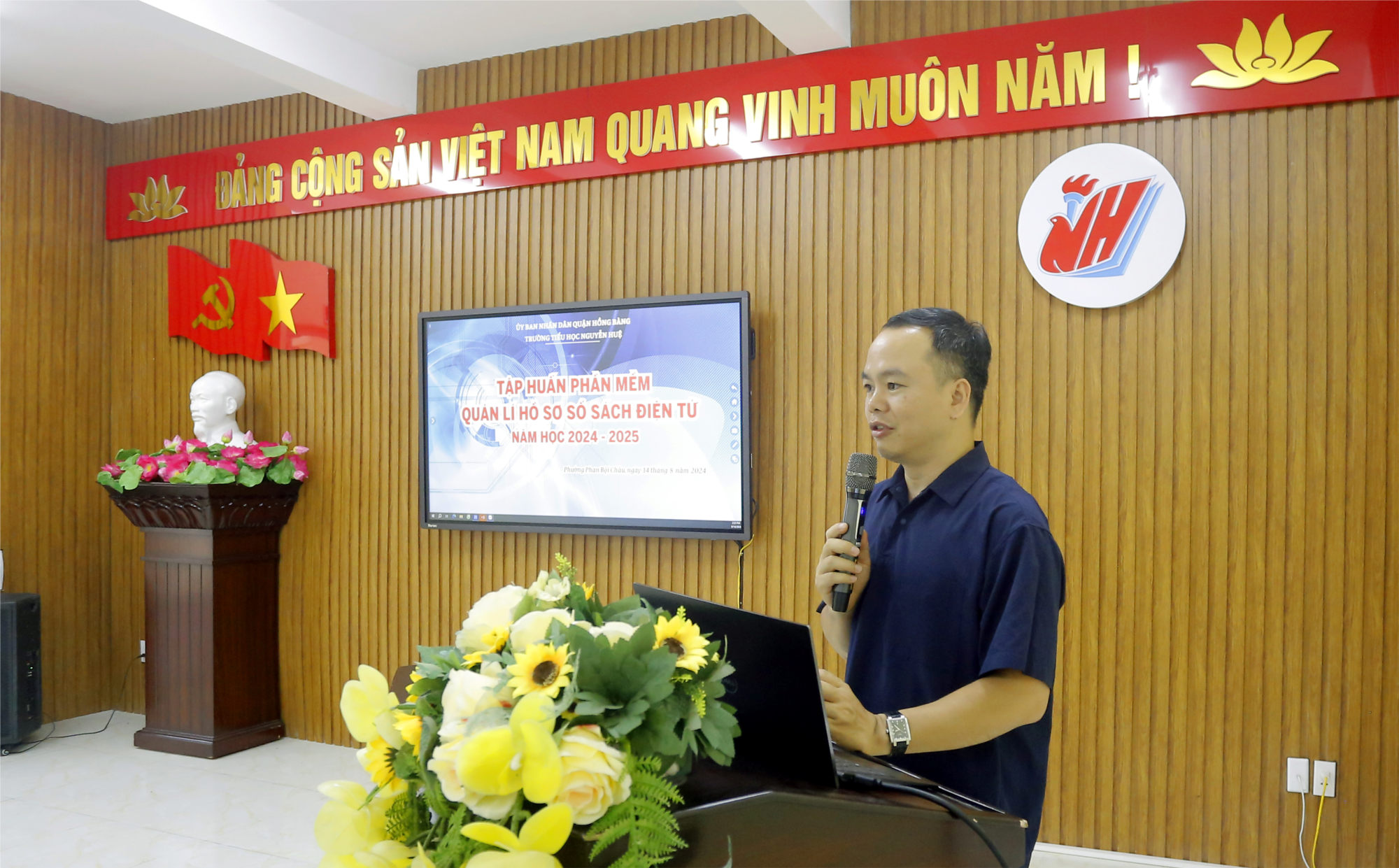 Để chuẩn bị cho năm học mới 2024 – 2025, chiều ngày 14/8/2024 tại trường Tiểu học Nguyễn Huệ, địa chỉ 117 Quang Trung, phường Phan Bội Châu đã diễn ra Hội nghị tập huấn phần mềm Quản lý hồ sơ sổ sách điện tử cho cán bộ giáo viên, nhân viên trong Nhà trường.