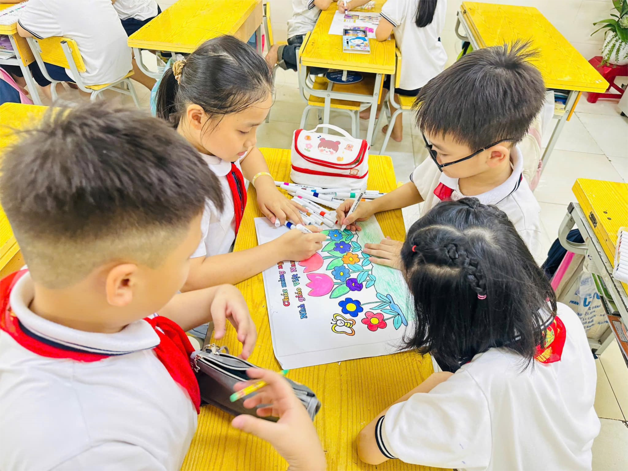 🌷🌷Hòa chung hòa chung với không khí nhộn nhịp, tươi vui, đón chào ngày lễ trọng đại: Ngày nhà giáo Việt Nam 20-11. Các em học sinh tham gia làm báo tường chào mừng ngày 20/11 như: làm bưu thiếp chúc mừng thầy cô, vẽ tranh, viết thơ, viết lời chúc, hát , múa … với chủ đề" Nhớ ơn thầy cô".