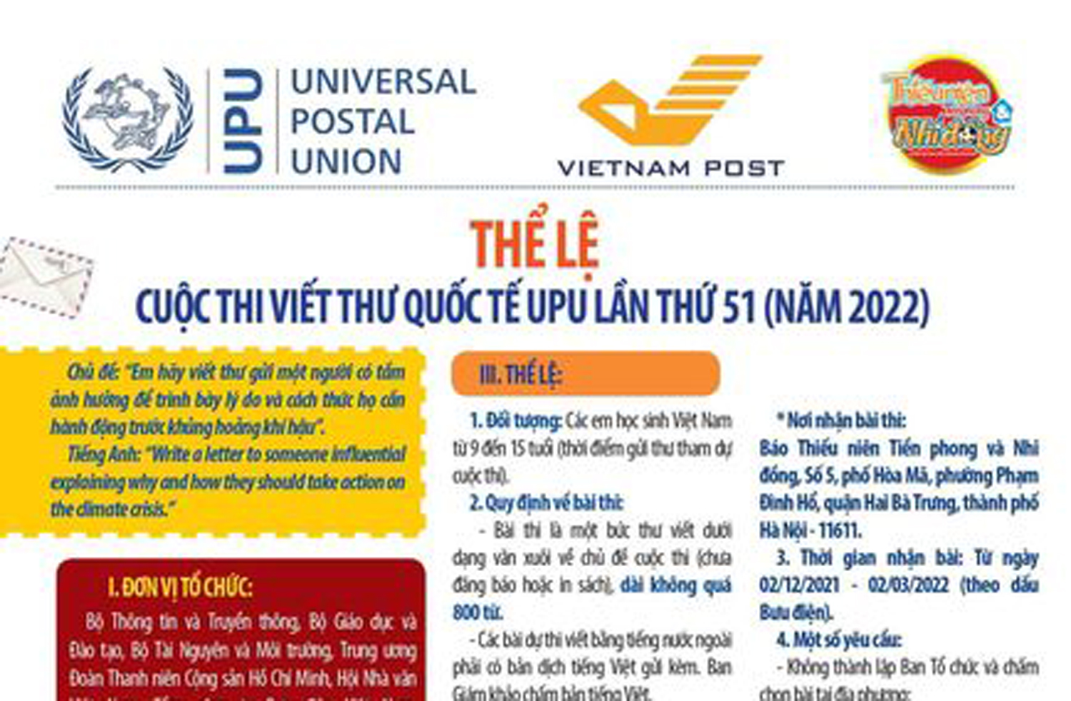CUỘC THI VIẾT THƯ QUỐC TẾ UPU LẦN THỨ 51 (NĂM 2022)