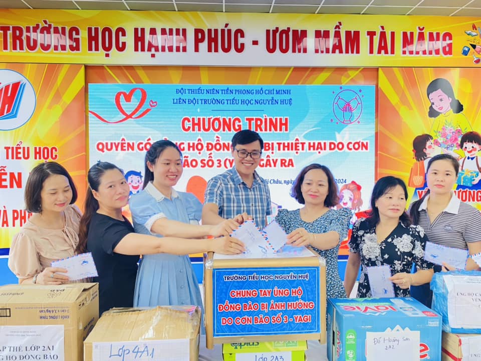 🌺Với tinh thần “Tương thân, tương ái”, “Lá lành đùm lá rách “, Liên đội trưởng Tiểu học Nguyễn Huệ đã phát động quyên góp ủng hộ đồng bào vùng lũ bằng những việc làm thiết thực của thầy và trò nhà trường như ủng hộ những cuốn sách, quyền vở và những đồ dùng học tập khác. Với mong muốn được đóng góp nho nhỏ, sẻ chia tấm lòng tới những bạn vùng bão lũ để động viên các bạn vượt qua mọi khó khăn nhanh chóng ổn định tiếp tục học tập.