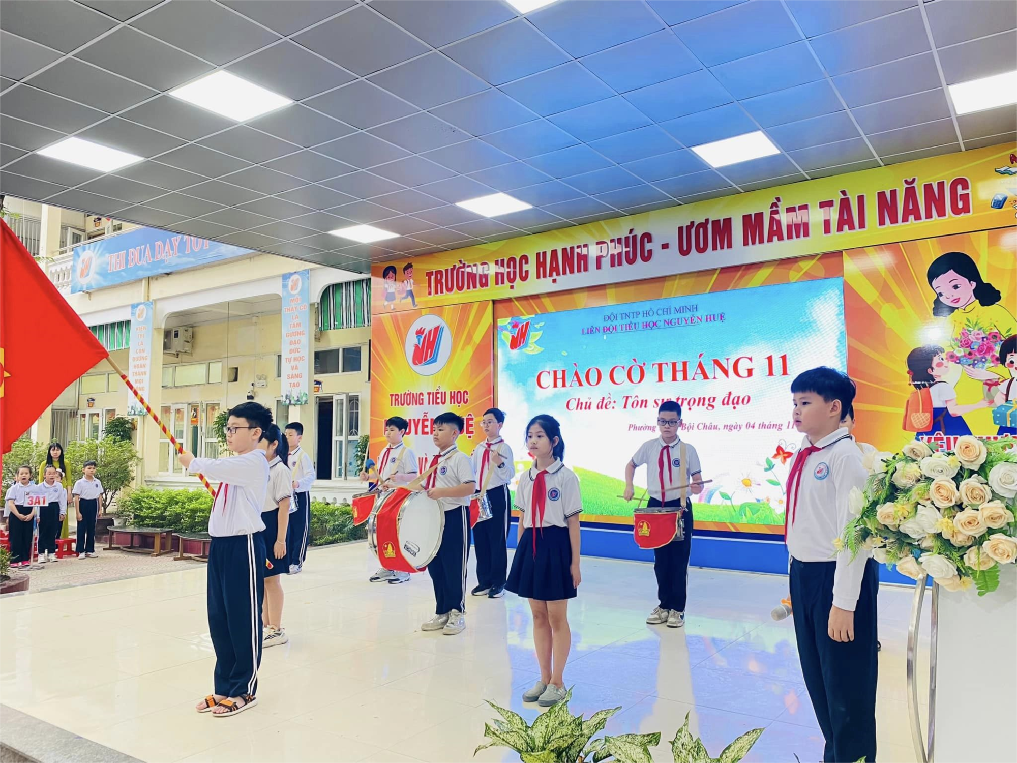 🌼Thực hiện Chương trình công tác Đội và phong trào thiếu nhi năm học 2024-2025. Sáng ngày 04/11/2024, Liên đội trường TH Nguyễn Huệ tổ chức Lễ chào cờ tháng 11 với chủ đề: “Tôn sư trọng đạo”.