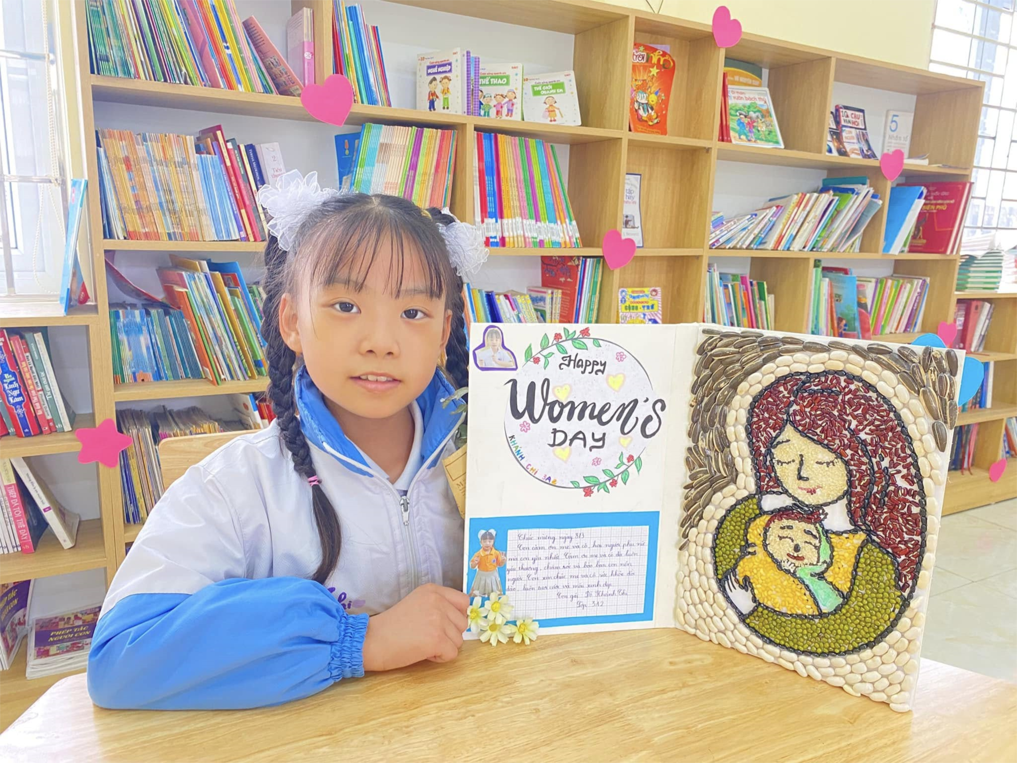 🌈Trong Hội thi làm thiệp mừng Ngày Quốc tế Phụ nữ 8/3 tại Trường Tiểu học Nguyễn Huệ, có một tấm thiệp đặc biệt đã xuất sắc giành giải cao nhất – tấm thiệp đó em học sinh Đỗ Khánh Chi lớp 3A2 thực hiện.🌷