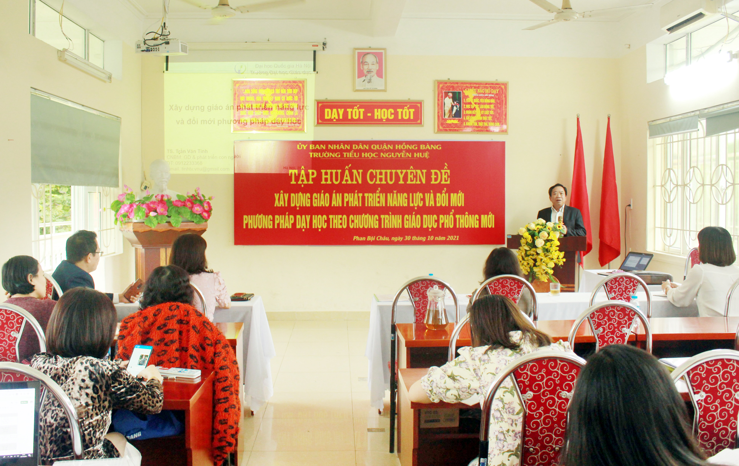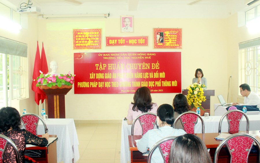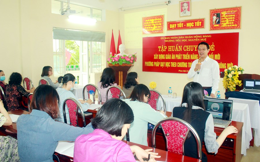 Ngày 30/10/2021 trường TH Nguyễn Huệ tổ chức Tập huấn chuyên đề Xây dựng giáo án phát triển năng lực và đổi mới phương pháp dạy học theo chương trình giáo dục phổ thông mới.