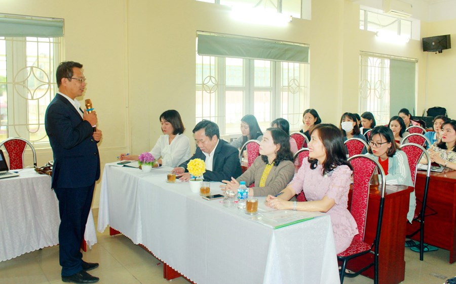 Tại buổi tập huấn thầy đã chia sẻ những nội dung cấu trúc phát triển năng lực, phẩm chất, cho học sinh. Nghiên cứu mô hình dạy học như một trò chơi, trong đó có sự hỗ trợ của giáo viên và gia đình những lúc cần thiết, động viên kịp thời sự phát triển của học sinh, làm thế nào để học sinh đạt được mục đích và sự thành công trong của việc học của mình; Tạo hứng thú học cho học sinh. Một điều mới nữa là phải tạo học sinh tính sáng tạo, tính mở khi giải quyết một vấn đề nào đó. Đào tạo học sinh học những kiến thức mới để vận dụng vào thực tế. Dạy học cho học sinh gắn liền với nhu cầu của xã hội, nhu cầu của cộng đồng. Khuyến khích sử dụng công nghệ trong dạy học.