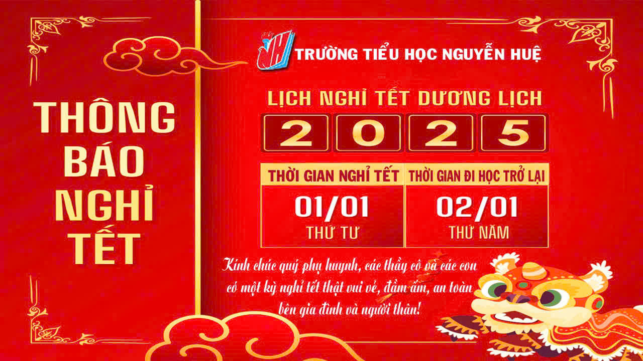 Nhà trường trân trọng thông báo lịch nghỉ Tết Dương Lịch năm 2025 như sau:
